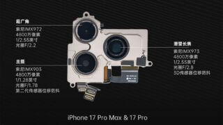 iPhone/Apple iPhone 17シリーズ、カメラセンサーは全モデルでソニー製を採用 分解レポートから、iPhone 17シリーズに搭載されるカメラセンサーがすべてソニー製であることが明らかになりました。対象はiPhone 17、iPhone 17 Pro、iPhone 17 Pro Maxに加え、新登場のiPhone Ai... 2025.09.22 iPhone/Apple